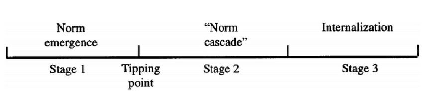 (1) Finnemore and Sikkink’s “norm life cycle”: Finnemore, Martha, and Kathryn Sikkink. “International norm dynamics and political change.” International organization 52.4 (1998): 887-917.